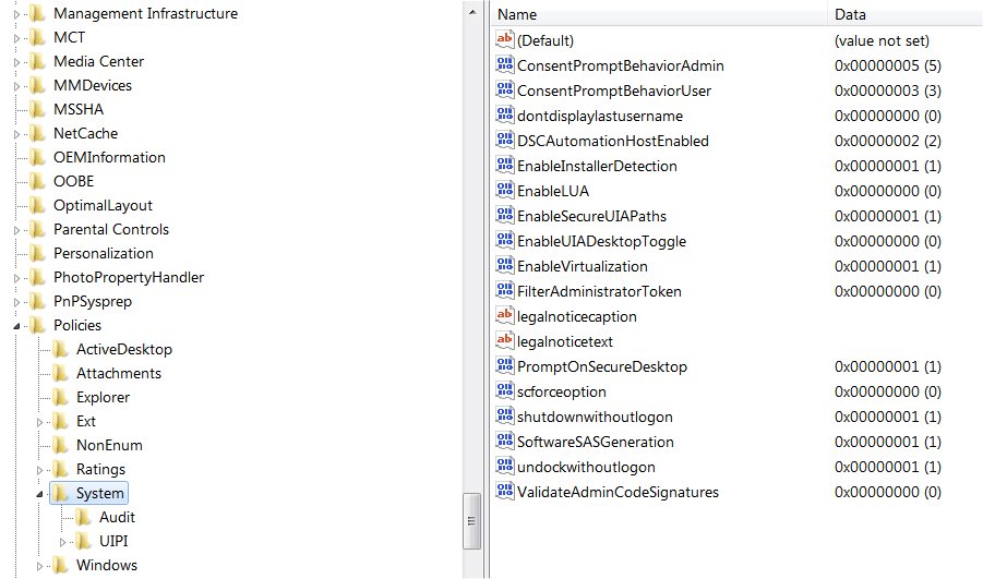 The problems on one user’s computer were related to a value of 0. If yours is not 0 although you have UAC turned off, maybe the problem is more related to Group Policies than to UAC itself.