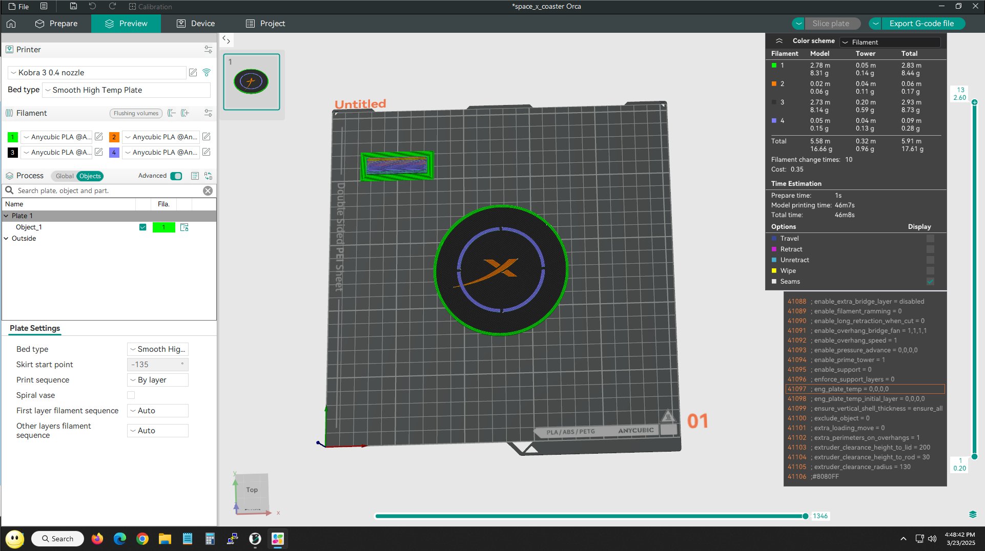 Reload model into Orca Slicer 2.3.0-RC change to your Kobra 3 and filament profiles slice and save to USB flash drive then print with Kobra 3.