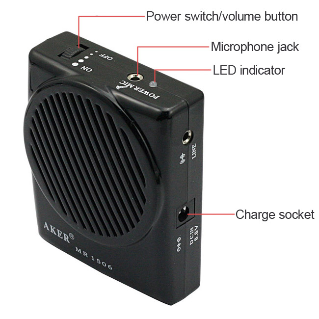 Power Source: Built-in Lithium battery. Main power comes from VoiceBooster Amp