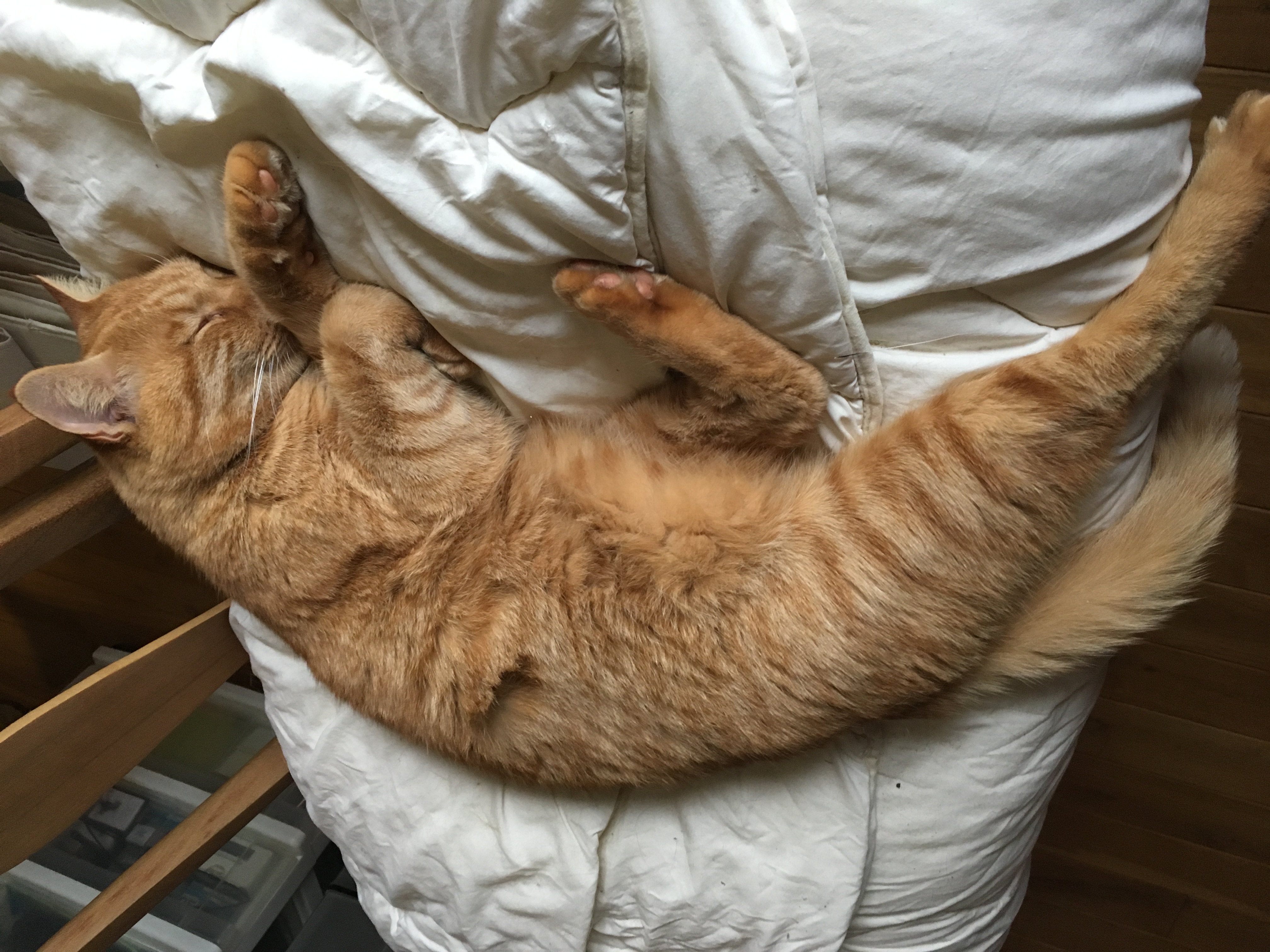 She likes to sleep in the most unusual positions. Most of the time, on me
