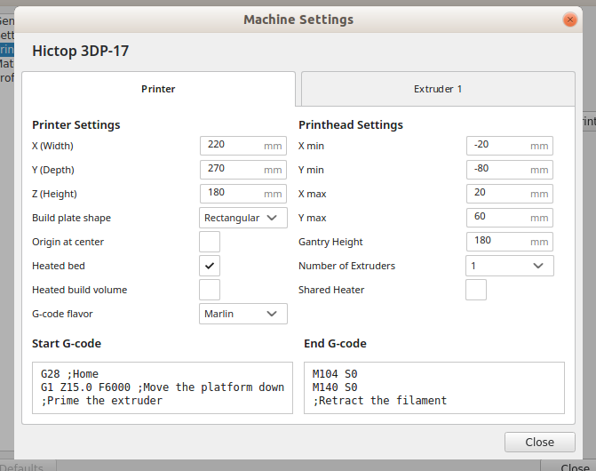 3D Printer(s): Hictop 3DP-17, Hictop CR-10S