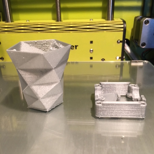 After that I printed two more things...without adjusting anything...just to see how it performs. Still not perfect...but acceptable as first prints. The vase shows some signs of underextrusion...but i'm not sure if it is that...or the fact that the nozzle bumped into the "blobs" while printing and thus moved the shell, as it was only one shell.