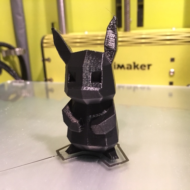 First off...low-poly Pikachu printed with Polymaker Polyflex, 200C, 50mm/s, 0.15 layers, retractions enabled, sliced with Cura 15.04. No other changes to the default settings.