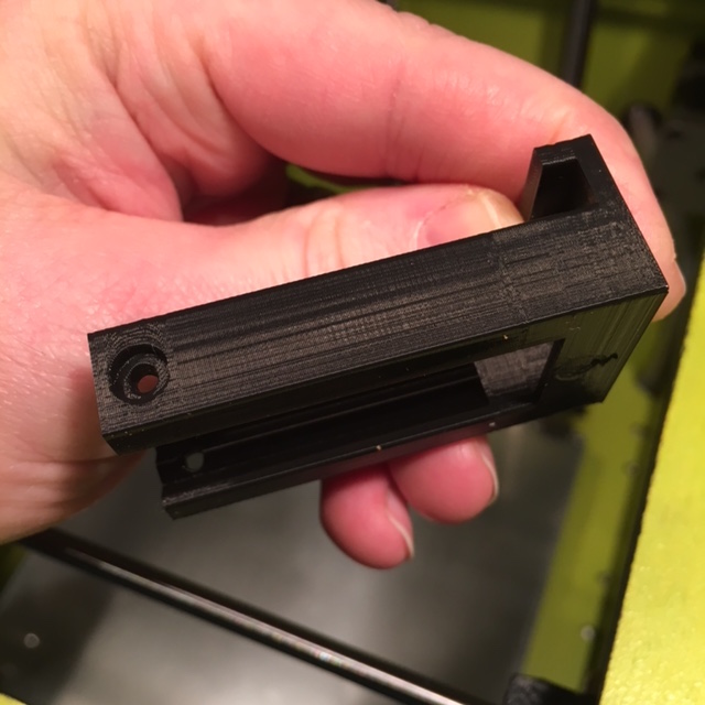 Next I printed the same part that I could so easily break due to the "hollow" layer caused by the crappy bearings. Same settings and slicer as above.