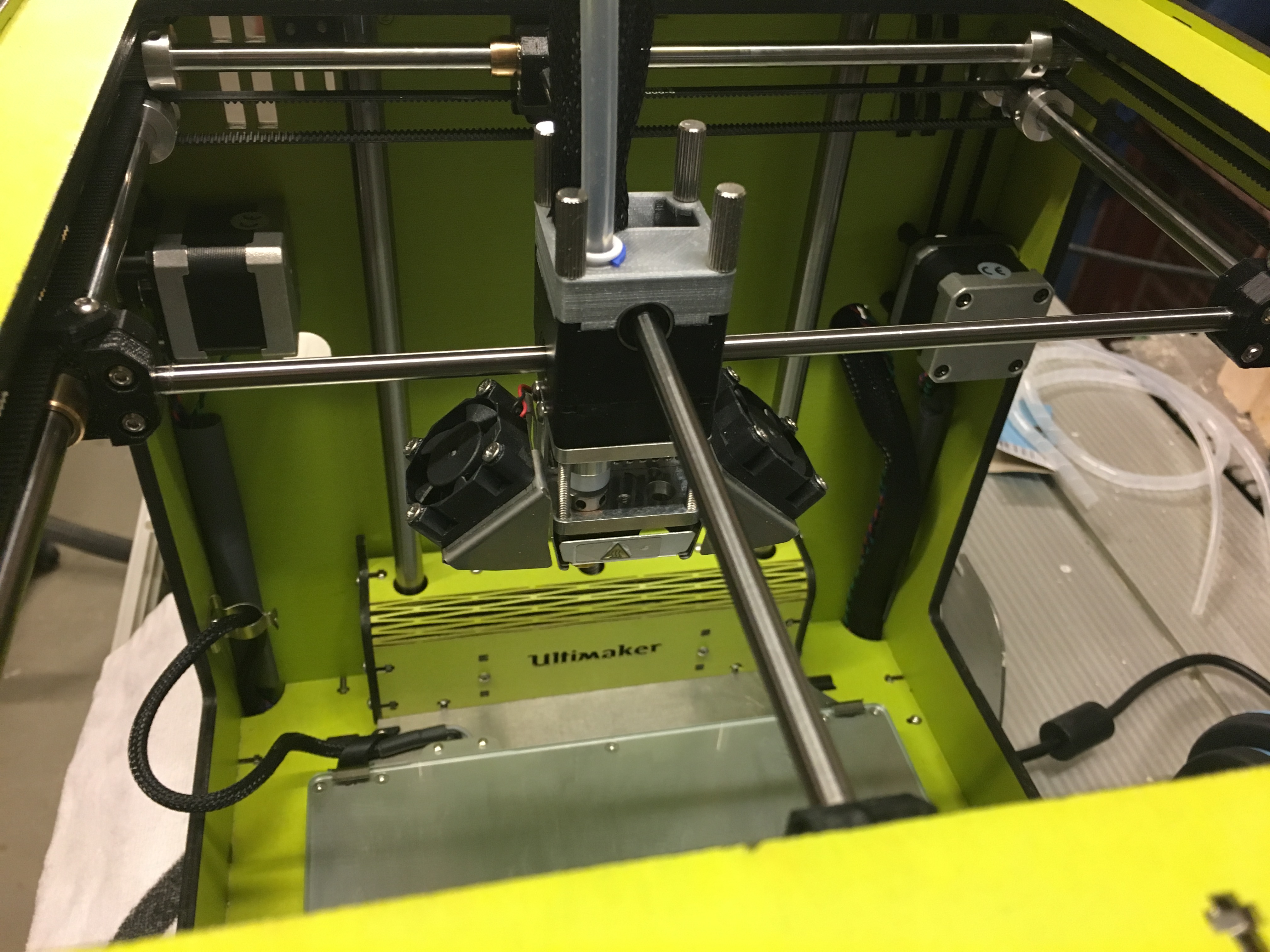 I finally managed to get some time to put my refurbished UM2(+) print head mounted. A simple operation thanks to Meduza's top part :)