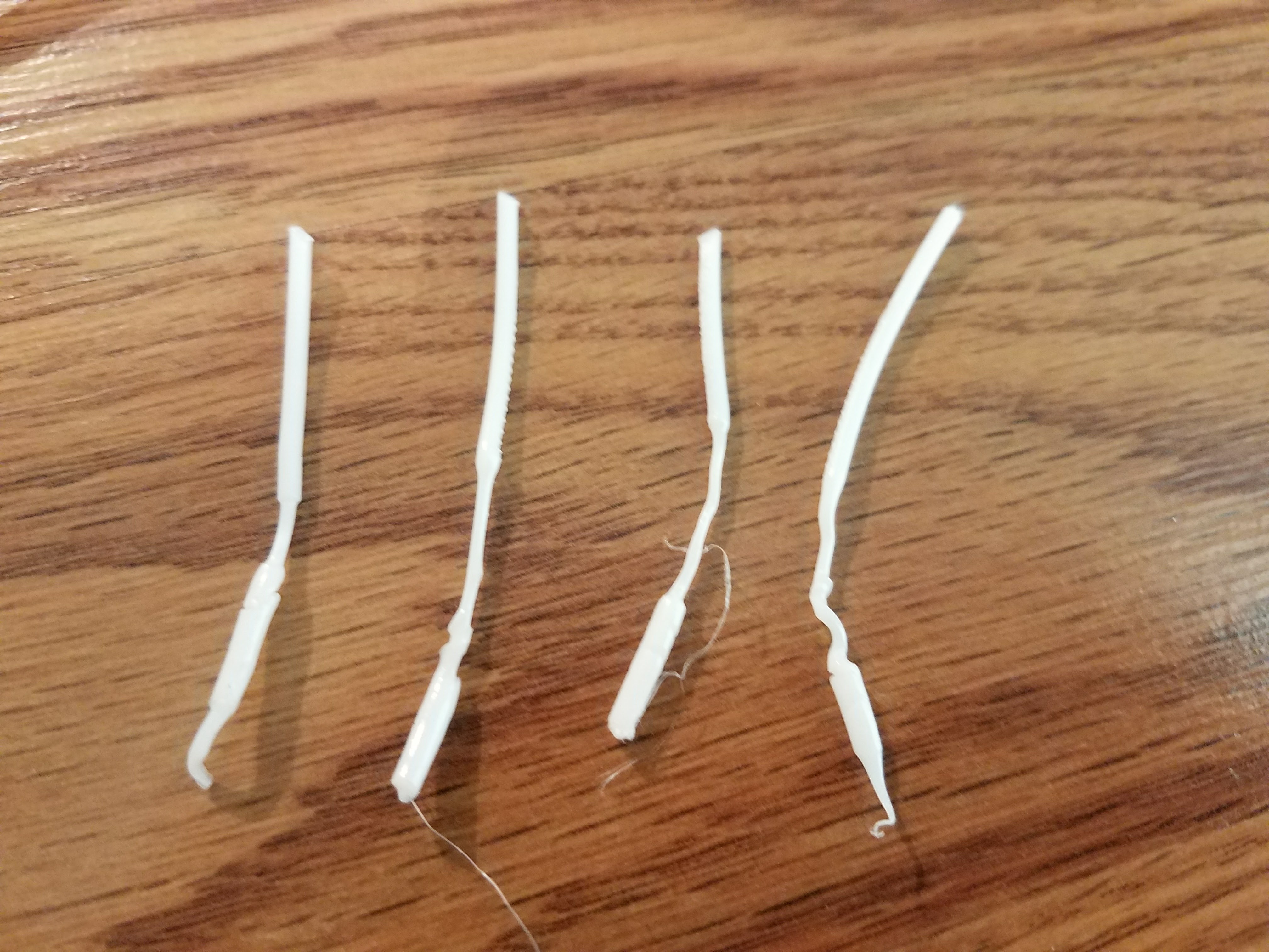 My Hictop 3DP12 i3 Prusa was working great for several months, and I've enjoyed it. Just for a week now, it continues to jam after 10-30 minutes into a print. The nozzle will clog, nothing will come out, and the machine will go on without pushing any filament out. I've looked through many forums and tried all their suggestions, but none have worked so far. I have replaced the jet fan, throat, and nozzle. I have re-leveled the bed and raised the auto-leveler to avoid the nozzle dragging. I have cleaned out the extruder gear. Still no help. If I pull the filament out after it jams, snip the end, then feed it back in, it will work well again for another 10-30 minutes before clogging again. The interesting thing is that the clogged end always looks the same, 2 normal diameter sections separated by a long thin section (see the attached picture) Could use some help ASAP as I have a delivery to make for this. Thanks in advance!
